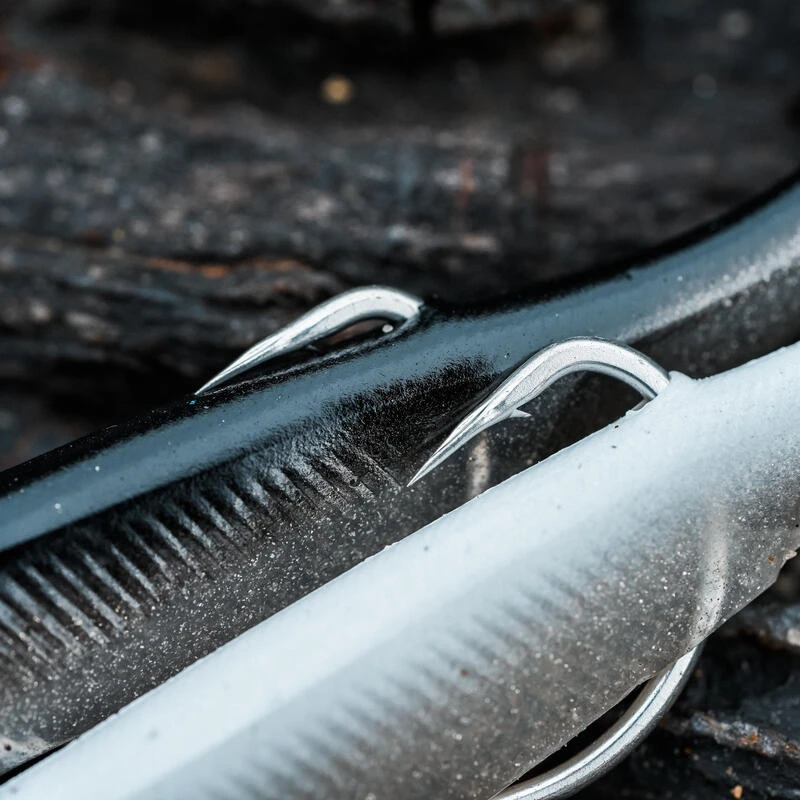GrĂące Ă son hameçon texan VMC, ce leurre anchois permet de passer dans les obstacles (rochers, algues, laminaires, …) en limitant les risques d’accroche.