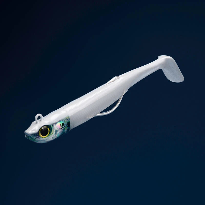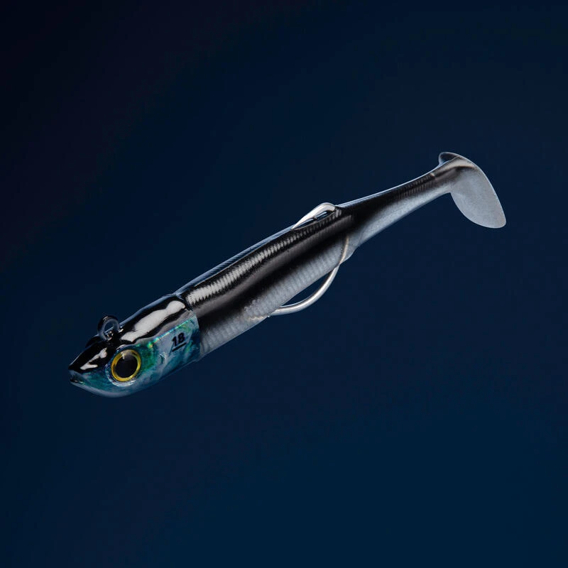 GrĂące Ă son hameçon texan ORIGIN, ce leurre anchois permet de passer dans les obstacles (rochers, algues, laminaires, …) en limitant les risques d’accroche.