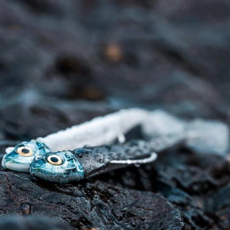 GrĂące Ă son hameçon texan ORIGIN, ce leurre anchois permet de passer dans les obstacles (rochers, algues, laminaires, …) en limitant les risques d’accroche.