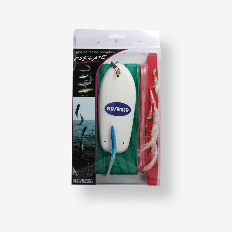 Cette ligne est conçue pour la pêche à la traîne.Cette ligne comprend un montage ligne avec un leurre type « raglou » et des imitations de lançons. Il n’y a plus qu’à dérouler le tout et maintenir sa ligne pour une pêche instantanée.