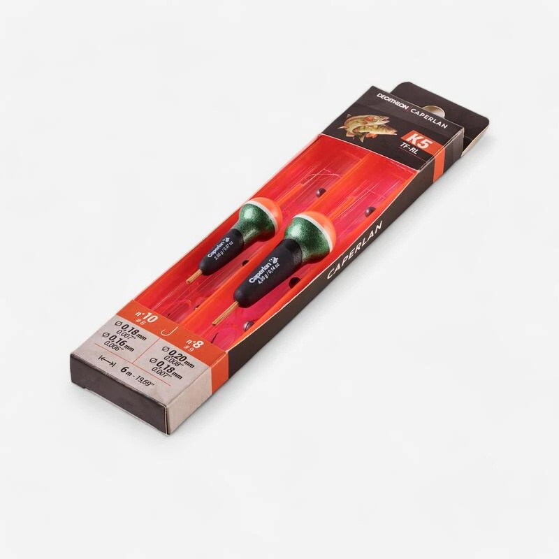 Conçu pour la pêche des petits carnassiers et de la truite en rivière avec des appâts naturelsKIT de 2 lignes prêtes à être montées sur le corps de ligne, équipées de flotteurs toulousains adaptés à la pêche en rivière et d’hameçons pour pêcher avec des appâts vivants.