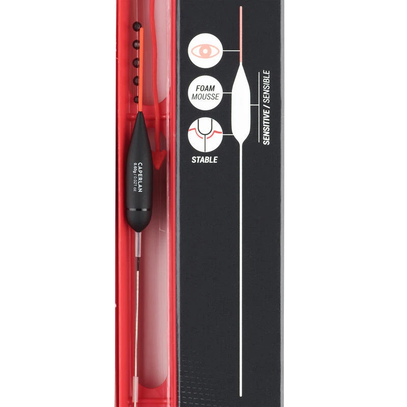 Le flotteur Ă©tant trĂšs sensible, il nĂ©cessitera peut-ĂȘtre un petit plombs d’Ă©quilibrage supplĂ©mentaire si vous souhaitez pĂ©cher avec une ligne ayant une antenne Ă moitiĂ© immergĂ©e.