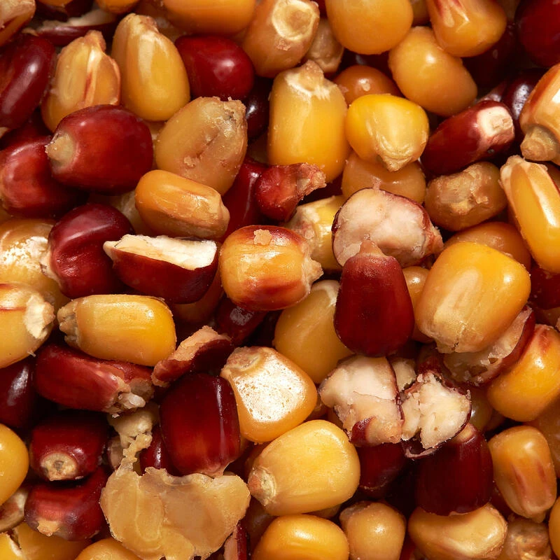 Composition: Maïs jaune (44%), maïs rouge (44%) monopropylène glycol, huile de tournesol, sel.