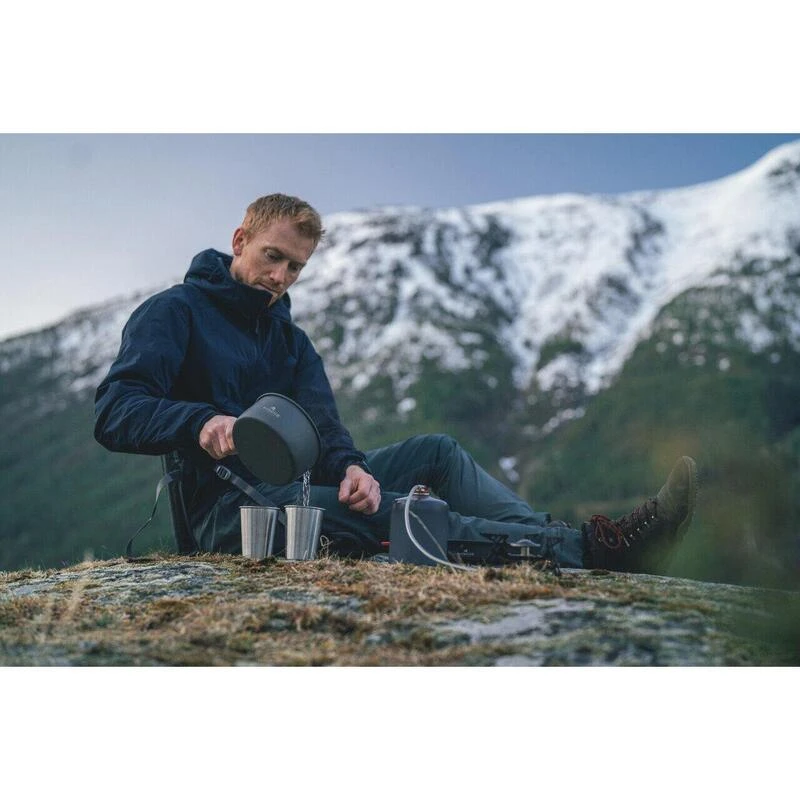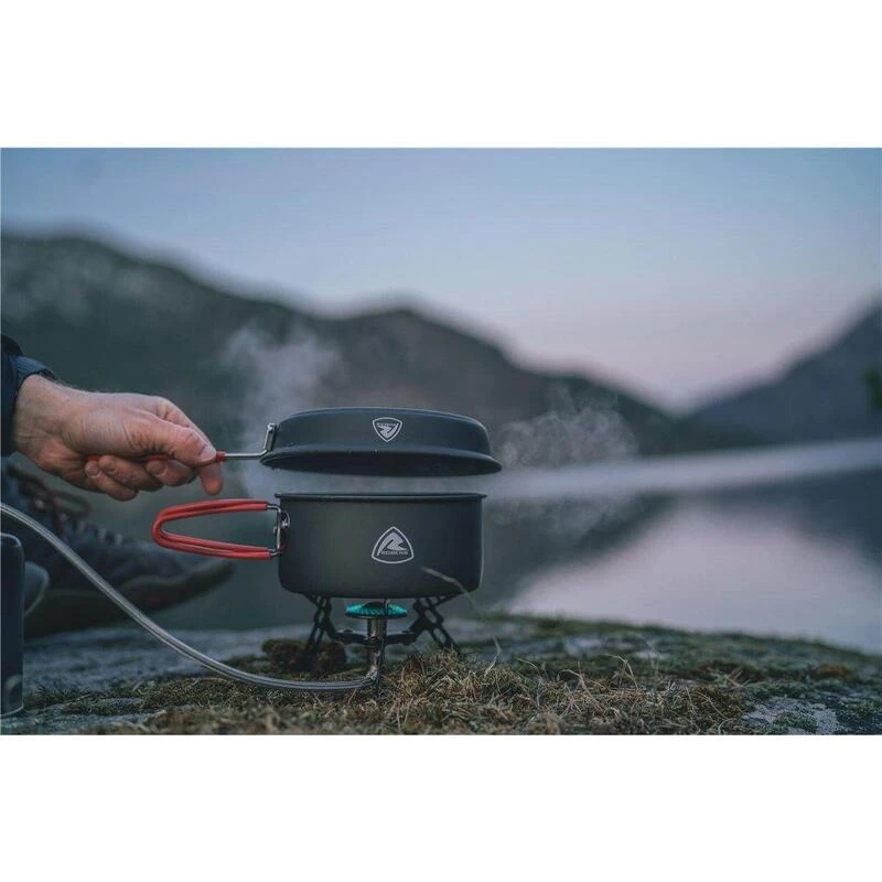Une pratique trousse de cuisine avec deux grands pots, une poĂȘle et un brĂ»leur Ă gaz stable. Parfait pour cuisiner lĂ©ger pour plusieurs personnes. Comprend une mallette de transport.