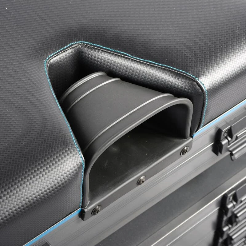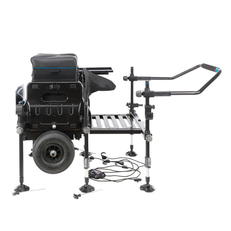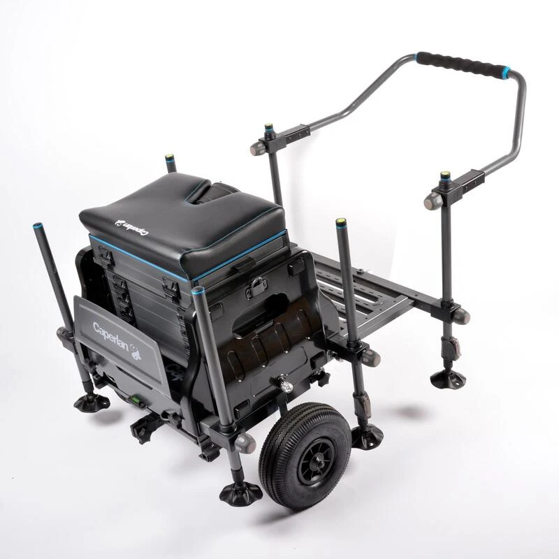 Les roues facilitent le transport. Vous pourrez transporter vos accessoires sur la plupart des terrains et revĂȘtements. Ne pas oublier de relever les roues en action de pĂȘche.