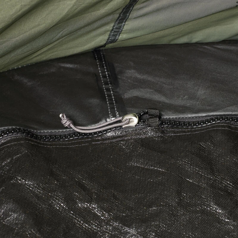 Sa structure autoportante vous permet de le dĂ©placer Ă votre guise une fois dĂ©pliĂ©. Pour terminer l’installation, il vous suffit de fixer le bivvy au sol au moyen des 14 sardines vrilles inclues et de tendre la toile grĂące aux 5 tendeurs.